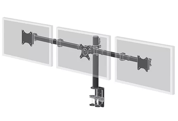 Iiyama DS1003C-B1 je stoni nosač za tri ravna ekrana do 2 inča. Zahvaljujući nosaču možete postaviti tri monitora čak i ako je prostor na vašem radnom stolu vrlo ograničen.