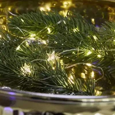 Novogodišnje lampice u nizu dužine 645cm. Niz sadrži 120 lampica koje rade na baterije i mogu se koristiti na otvorenom prostoru.