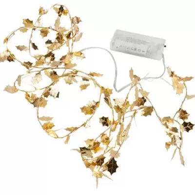 Niz novogodišnjih lampica dužine 3,2m, sa 40 LED dioda koje daju toplo belu svetlost. Rade na baterije.