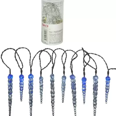 20 LED lampica u obliku ledenica, dužina 11 cm i 16 cm. Ukupna dužina niza iznosi 230 cm, a ukupna dužina žice 260 cm. Naizmenično se pali plavo-belo...