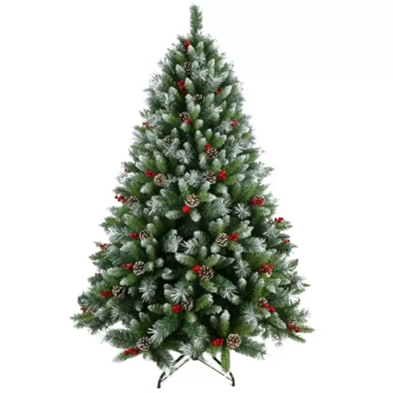 Novogodišnja jelka sa šišarkama i bobicama, visine 120cm. Odlikuju je gusto raspoređene grane, sa snežnim vrhovima, u kombinaciji sa šišarkama i crvenim bobicama.