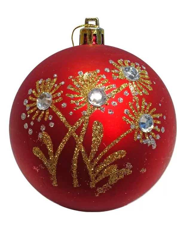 Crveni ukrasi za jelku sa dekoracijom prečnika 8 cm - 6 komada