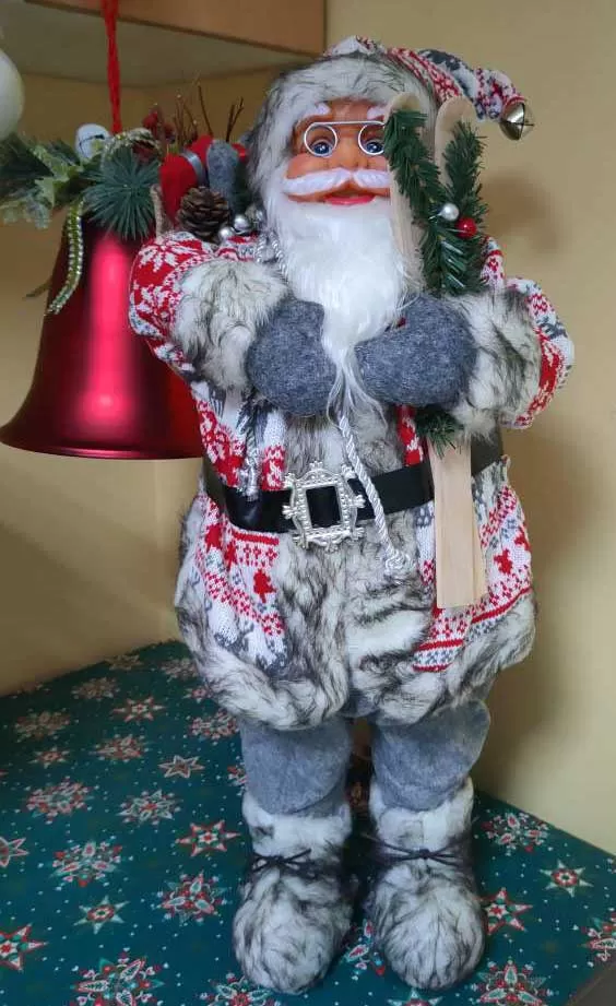 Figura Deda Mraza sa poklonima, skijama i grančicama