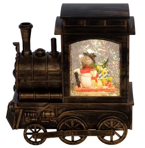 Plastični fenjer u obliku lokomotive sa toplo belom LED diodom. Lokomotiva je napunjena vodom i imitira efekat padanja snega. Moguć je konstantan rad ili rad putem tajmera.