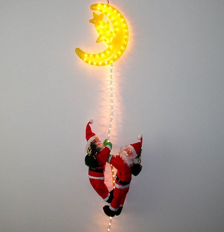 Dva Deda Mraza Na Svetlećem LED Užetu + Mesec i Zvezde
