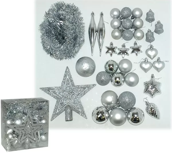 Komplet ukrasa za jelku 36 komada srebrne boje