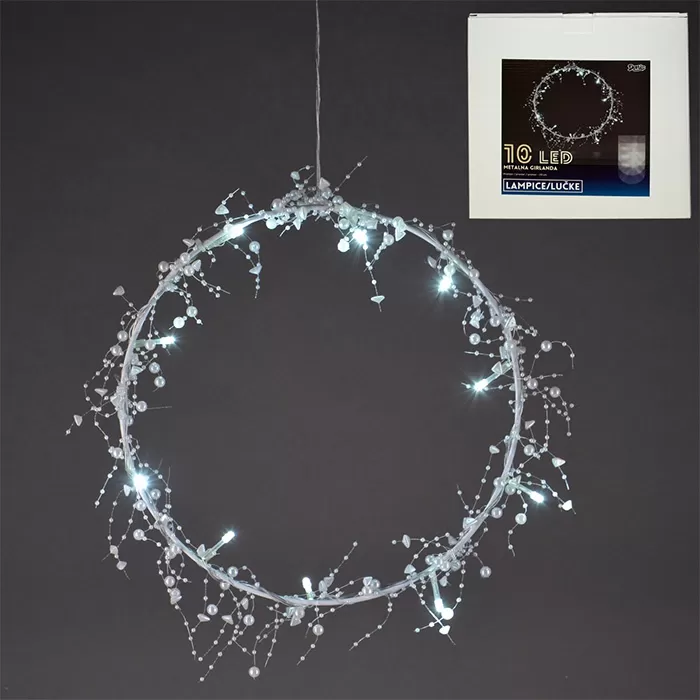 Metalna girlanda sa 10 LED lampica i ukrasima u obliku kruga 29 cm