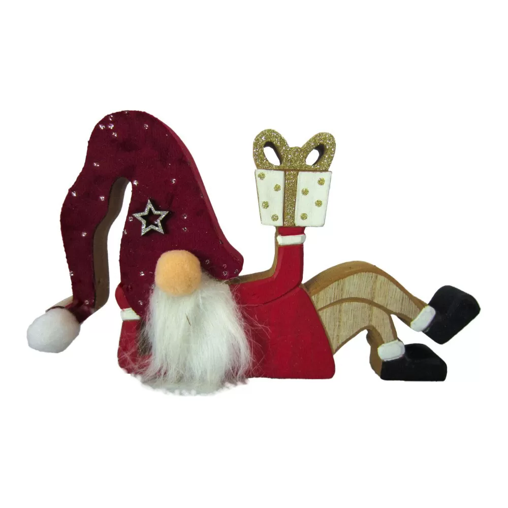Novogodišnja drvena dekoracija Patuljak sa poklonom