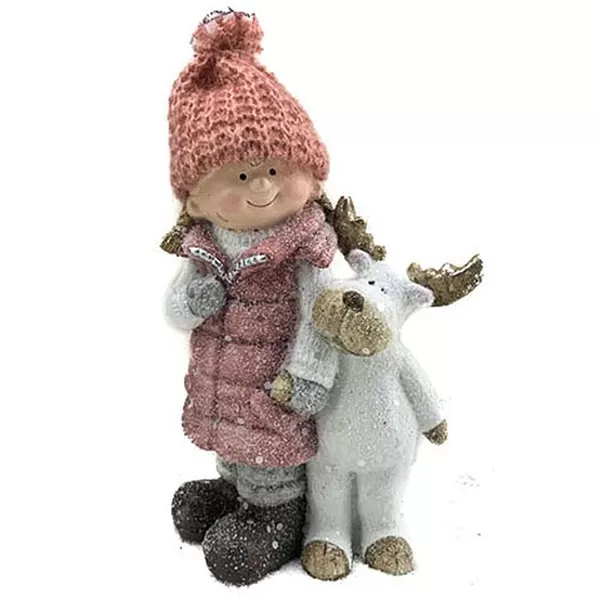 Novogodišnja i božićna dekoracija 21cm Devojčica i irvas