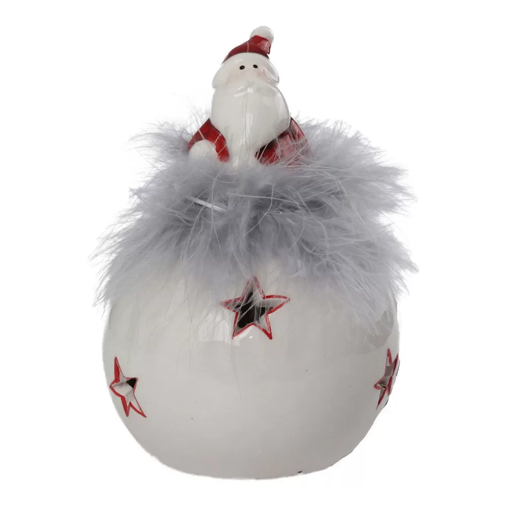 Novogodišnja i božićna dekoracija Keramička figurica Deda Mraz na grudvi snega 16cm sa LED svetlom