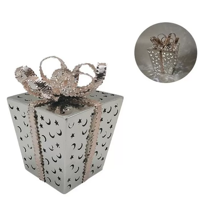 Novogodišnja i božićna dekoracija Svetlucavi poklon srebrni 16cm