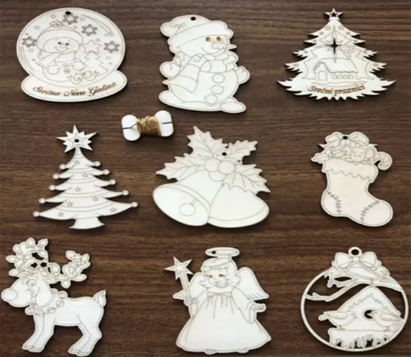 Novogodišnji drveni ukrasi 9 komada seO