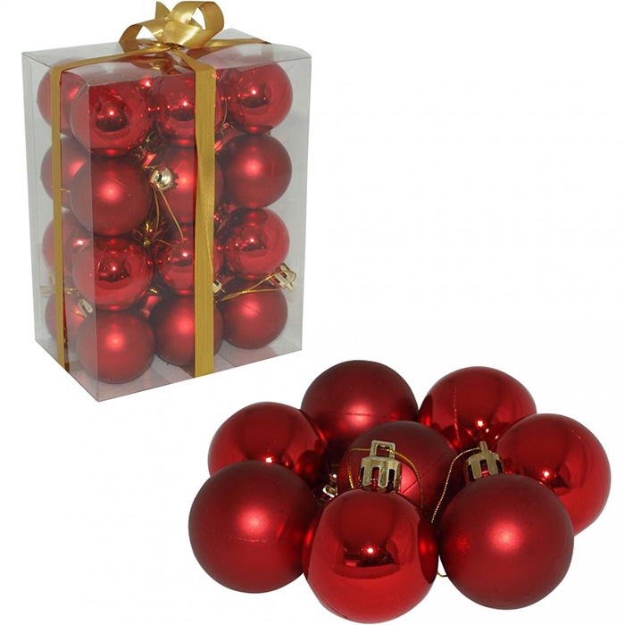 Novogodišnji ukrasi za jelku 24 crvene kugle