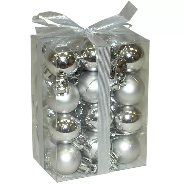 Novogodišnji ukrasi za jelku 24 kuglice srebrne