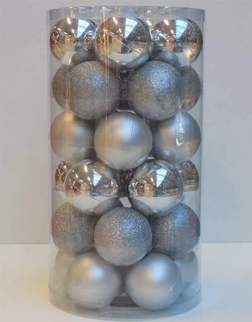 Novogodišnji ukrasi za jelku Kugle Srebrne 30 kom. 19014