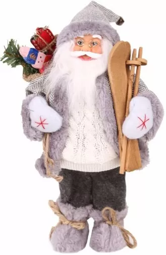 Sivi Deda Mraz sa džakom i skijama visine 45 cm
