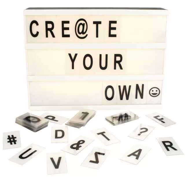 Svetleća kutija na baterije sa 85 slova za ispisivanje poruka