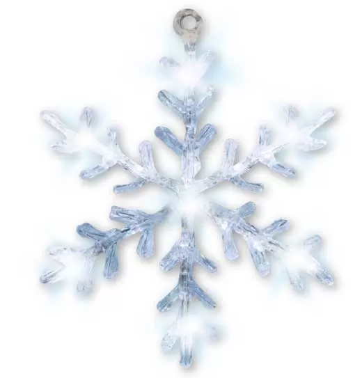 Akrilni ukras za prozor sa LED diodama, u obliku snežne pahulje. Napaja se putem baterija, te se lako i jednostavno postavlja na odgovarajuće mesto.
