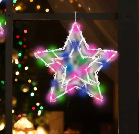 Ukras za prozor sa višebojnim LED diodama i 2 prilepka za prozor. Napaja se putem baterija, te se lako i jednostavno postavlja na odgovarajuće mesto.