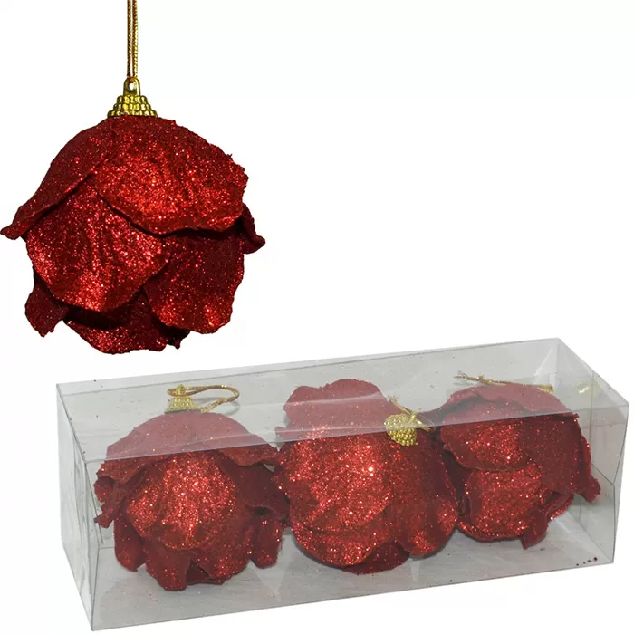 Ukras za jelku u obliku ruže u crvenoj boji 3 komada