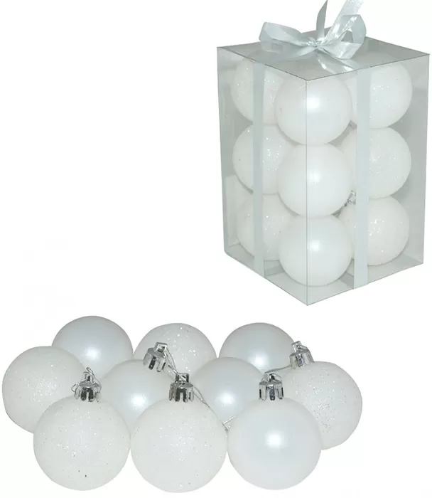 Ukrasi Za Jelku 12 komada - Kuglice 5 cm bele