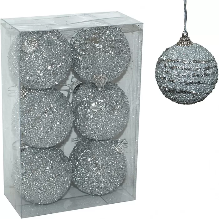Ukrasi za jelku 6 cm srebrni - 6 komada