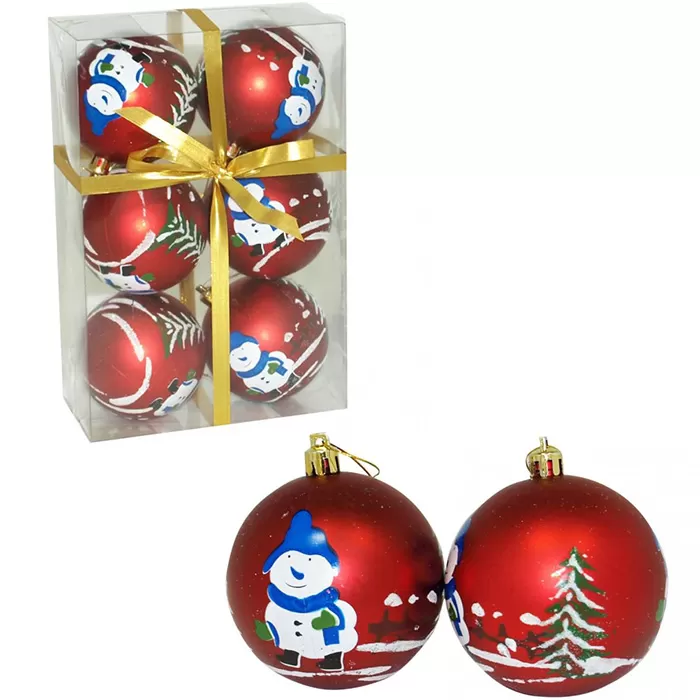 Ukrasi za jelku 6 komada - kugle 8 cm crvene sa dekoracijom