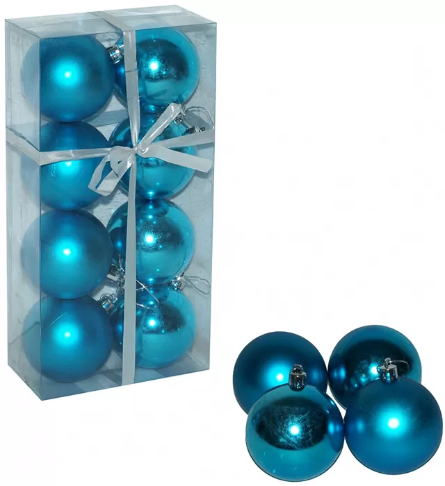 Ukrasi Za Jelku 8 komada - Kugle 7 cm Tirkizne
