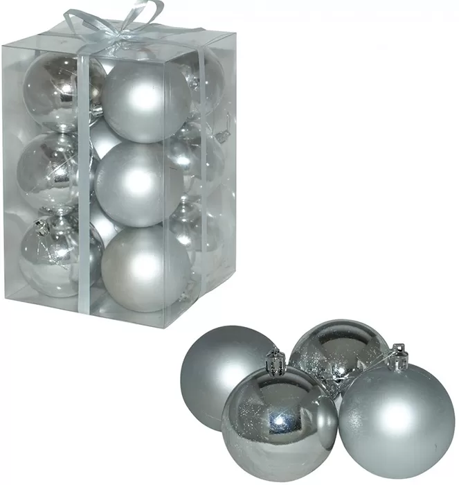 Ukrasi za jelku - kugle 8 cm 12 komada srebrne