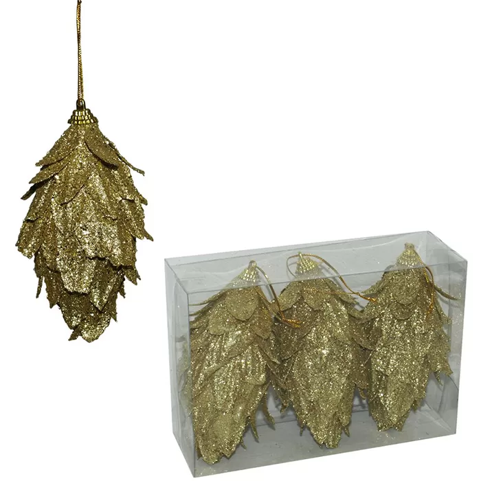Ukrasi za jelku - šišarke 10 cm 3 komada - zlatne