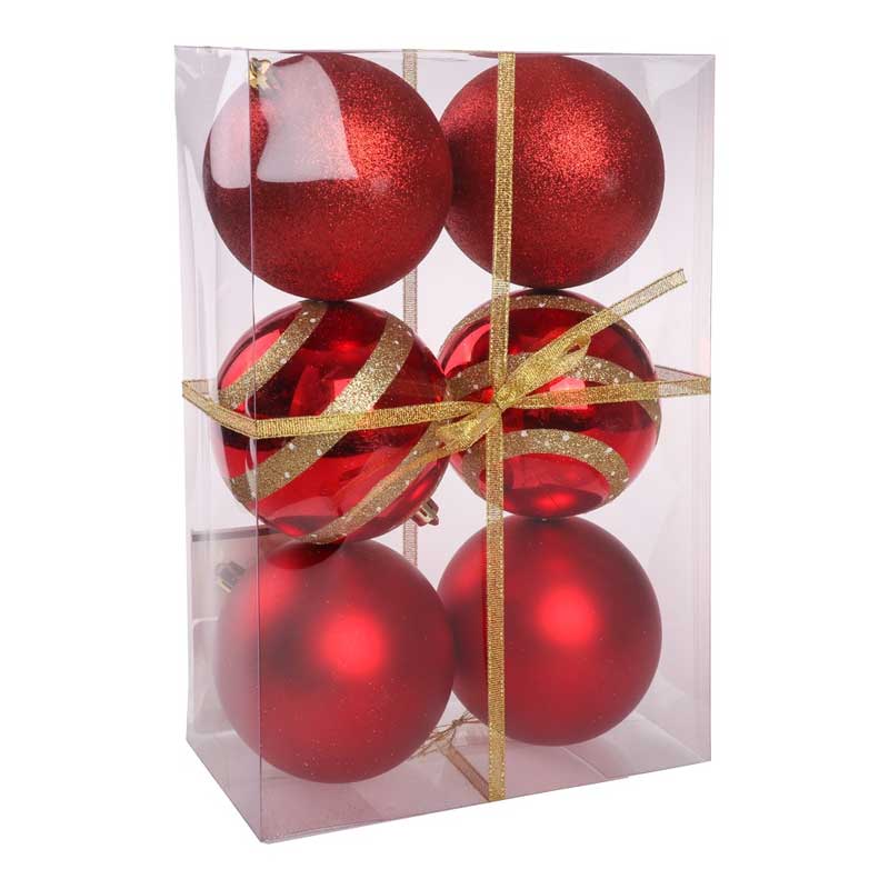 Ukrasi za novogodišnju jelku Kugle Icy Print 10cm 6kom. Crvene
