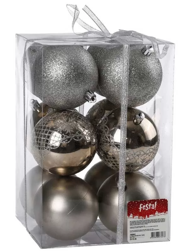 Ukrasi za novogodišnju jelku Kugle Icy Print 8cm 12kom. Srebrne