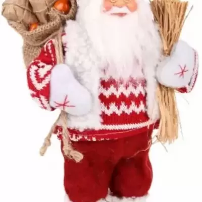 Figura Deda Mraza u crveno-belom džemperu sa džakom punim poklona. Visina figure: 60 cm. Nezaobilazan detalj u vreme Novogodišnjih i Božićnih...