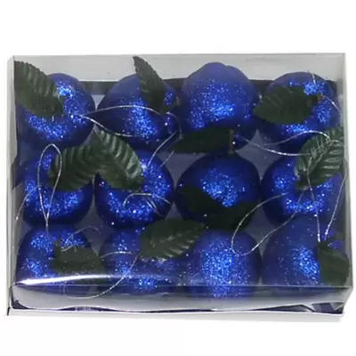 Pakovanje 12 ukrasa u obliku jabuka u plavoj boji. Veličina ukrasa: 4 cm.
