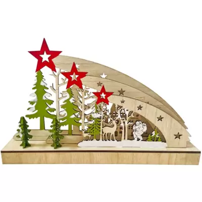 Drveni ukras sa motivima zvezde padalice. Dimenzije: 30 x 5 x 18 cm. 8 lampica toplo žutog svetla.