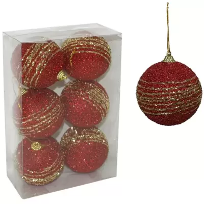 Crvene kugle prečnika 8 cm, izrađene od stiropora. U pakovanju dolazi 6 komada.