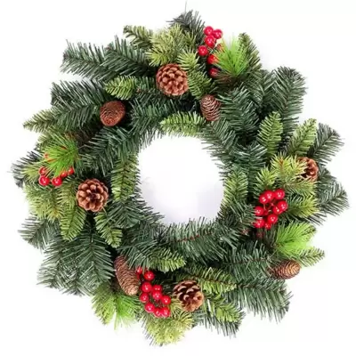 Dekorativni venac sa šišarkama i bobicama, prečnika 40cm, kvalitetne i bogate izrade koja u potpunosti dočarava zimsku idilu u vreme novogodišnjih i...