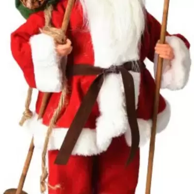 Figura Deda Mraza sa džakom i skijama. Visina figure: 30 cm. Nezaobilazan detalj u vreme Novogodišnjih i Božićnih praznika.