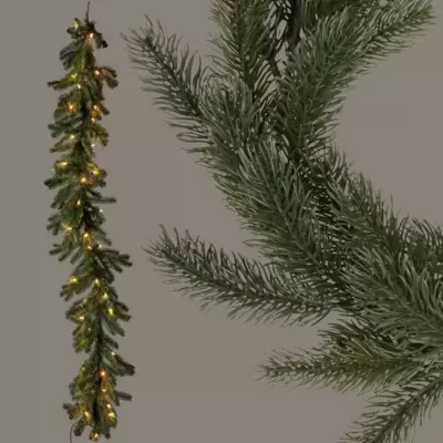 Žičana osnova girlande sa veoma realističnim, bujnim četinarskim granama. Svaka grana verodostojno oponaša izgled i teksturu pravog božićnog drveta.
