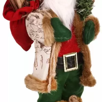 Simpatična figura Deda Mraza sa jelkom i džakom za poklone. Alyn, Deda Mraz, je napravljen od plastike, tekstila i drveta, visina figure je 30 cm....