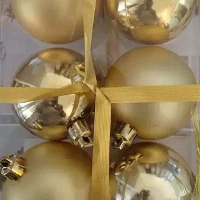 Komplet od 6 zlatnih kugli za ukrašavanje novogodišnje jelke. Prečnik kugle je 6 cm...