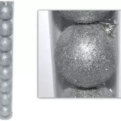 Komplet od 12 ukrasa za jelku srebrne boje. Prečnik kugle je 5 cm...
