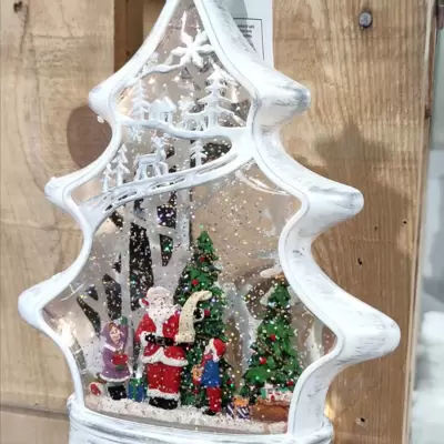 Simpatična novogodišnja kućna dekoracija u obliku jelke dimenzija 28.5 x 20 x 8.5 cm. Napaja se energijom pomoću 3 AA baterije. Kada se uključi...