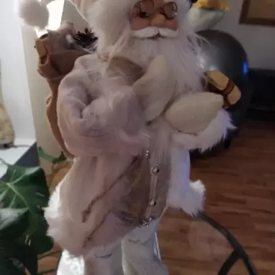Atraktivna i lepa figura, lutka Deda Mraza sa poklonima i jelkom. Lutka je napravljena od drveta, plastike i tekstila, visoka je 60 cm i samostalno...