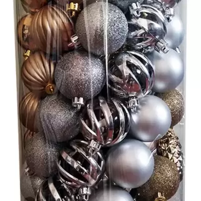Fenomenalan komplet ukrasa za novogodišnju jelku. Komplet čini 101 ukras, od kojih je 8 vrsta kugli prečnika 6 cm i šišarke...