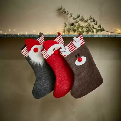 Novogodišnja čarapa u tri različita dezena. Dimenzije čarape su 28 x 50 cm. Ukoliko želite određenu boju molimo Vas da je navedete u napomeni...