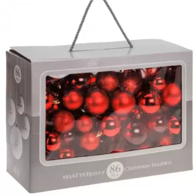 Komplet od 86 kugli za ukrašavanje novogodišnje jelke. Set sadrži 24 kugle prečnika 4 cm, 20 kugli prečnika 5 cm, 20 kugli prečnika 6 cm i 22 kugle...