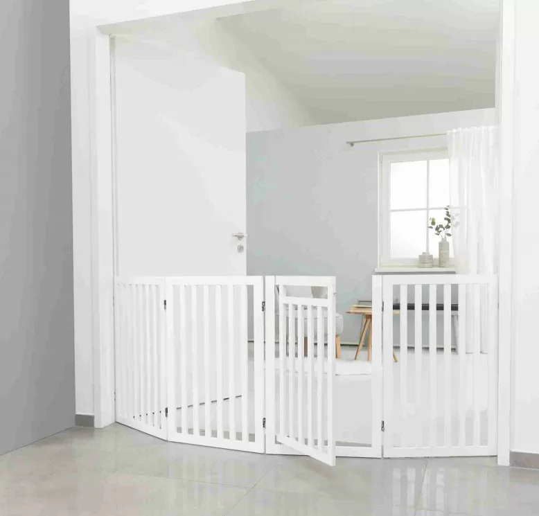 Kad je potrebno da sprečite svog ljubimca da dođe do nekih mesta u kući, rešenje je pregrada! Materijal: MDF; dimenzije: 60-160 x 81cm (podesiva po širini). Namenjena psima svih rasa.