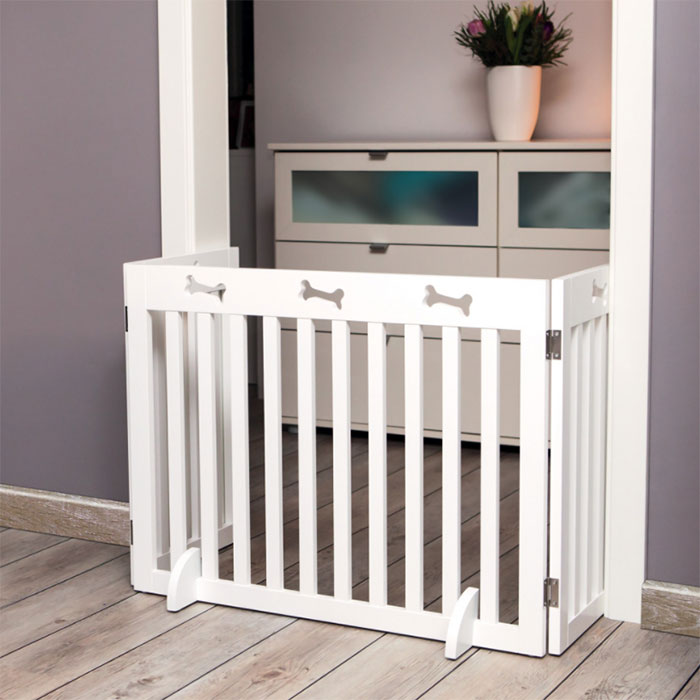 Kad je potrebno da sprečite svog ljubimca da dođe do nekih mesta u stanu, rešenje je pregrada! Materijal: MDF; dimenzije: 82-124 x 61cm (podesiva po širini). Namenjena psima malih i srednjih rasa.
