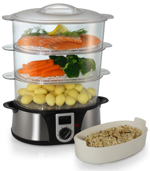 Prelepo dizajniran aparat za kuvanje na pari, idealan za istovremeno pripremanje mesa, ribe, povrća, pirinča, krompira i jaja. Podjednako zagrevanje obezbeđuje da se oblik i ukus hrane bolje očuva.